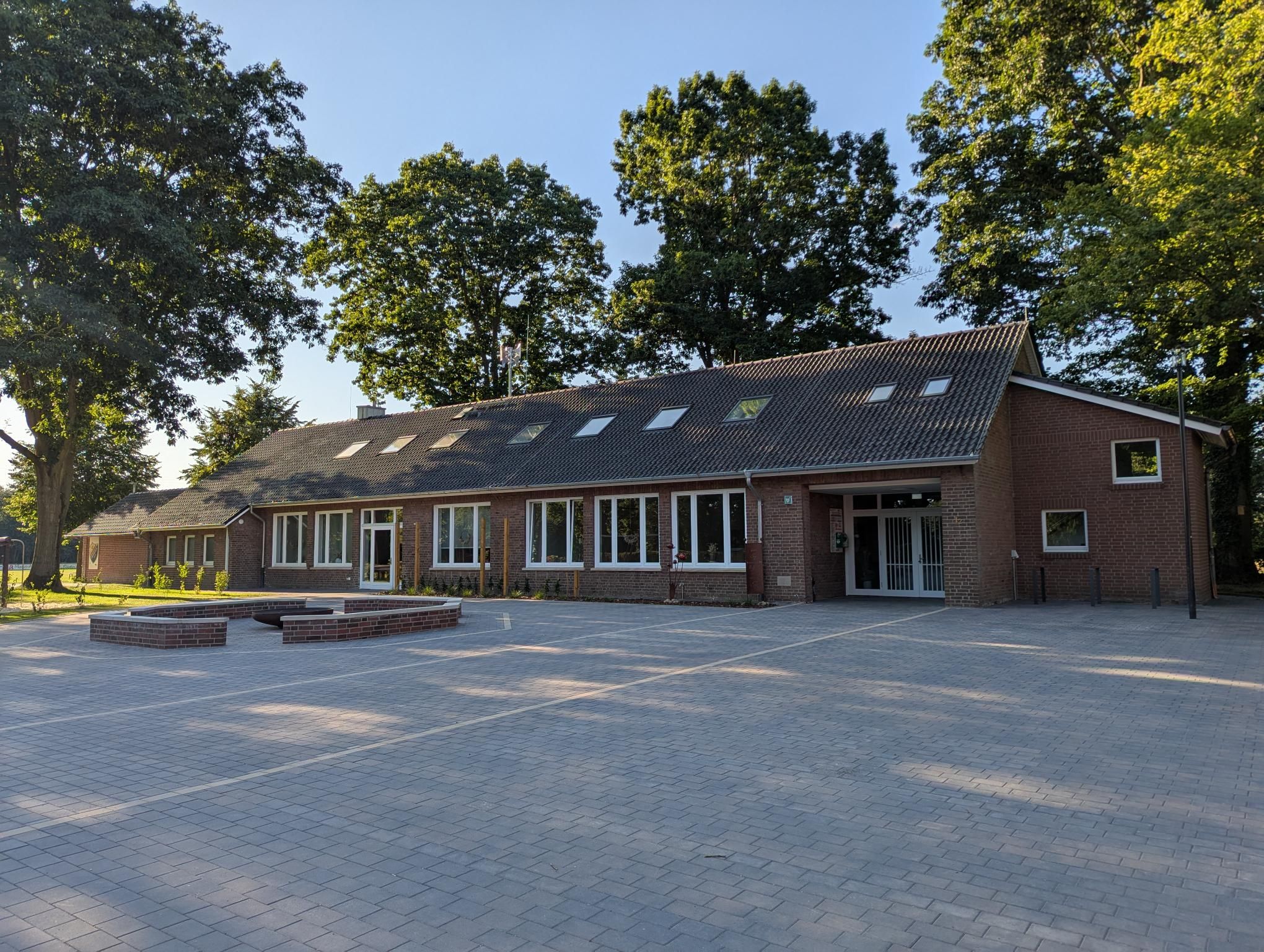 Die Außenanlagen sind nun auch fertig gestellt und bringen den neuen Mittelpunkt Elbergens gut zur Geltung.